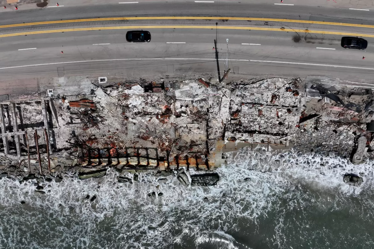 Yangının en çok etkilediği bölgelerden biri, Malibu’nun Pasifik kıyısındaki evler ve yapılar oldu. Alevler, sahil şeridinde yükselirken, bölgeden gelen görüntüler yıkımın boyutunu gözler önüne serdi.