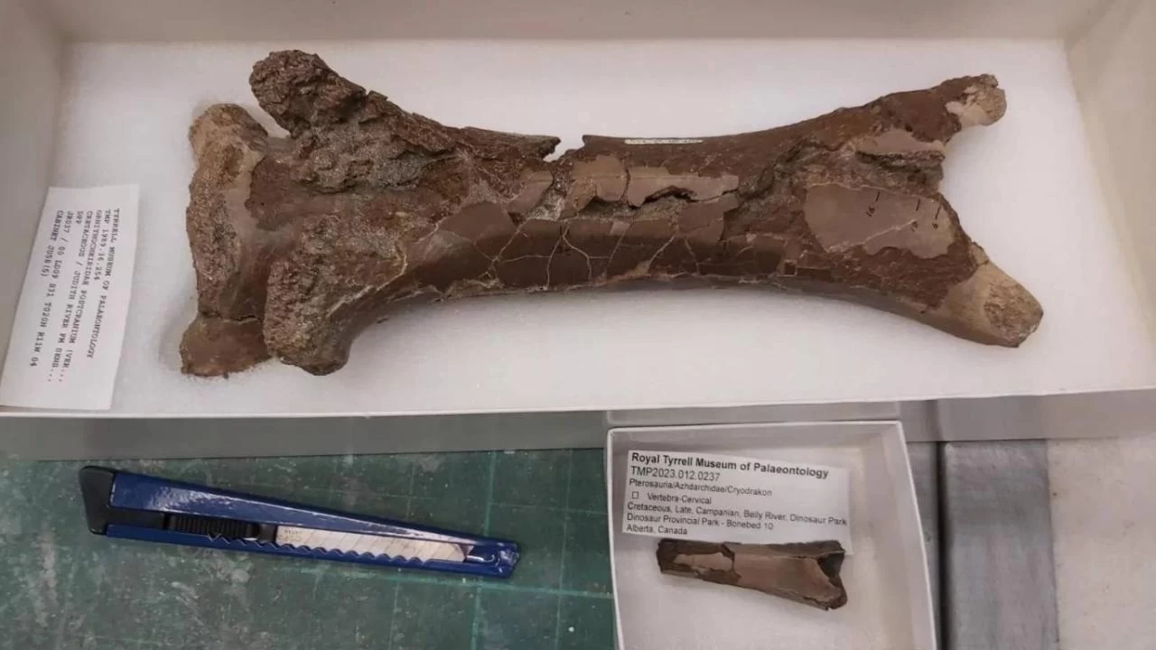 Kanada'nın Alberta bölgesinde çalışmalar yürüten paleontologlar, Azhdarchidae ailesinden bir teruzorun boyun kemiğini keşfetti.