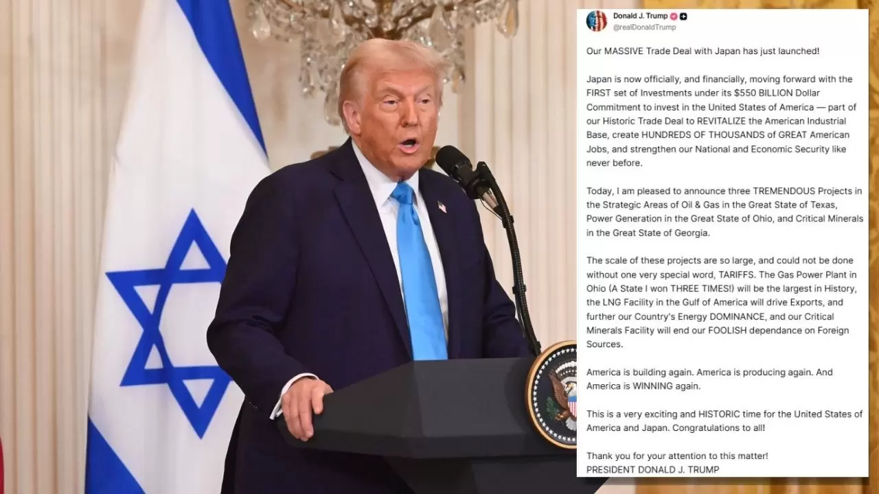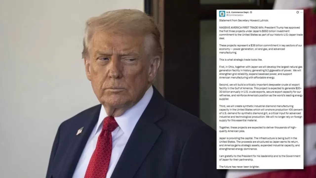 Trump açıklamasında, "Japonya, ABD’ye 550 milyar dolarlık yatırım taahhüdünün ilk aşamasını resmen mali olarak hayata geçiriyor. Bu yatırımlar, Amerikan sanayisini canlandırmak, yüz binlerce Amerikalıya istihdam sağlamak ve ulusal ve ekonomik güvenliğimizi daha önce hiç olmadığı kadar güçlendirmek için imzaladığımız tarihi ticaret anlaşmamızın bir parçasıdır" değerlendirmesinde bulundu.