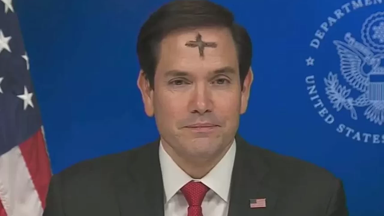 Katolik inancıyla yetişen Dışişleri Bakanı Rubio da bir haber kanalındaki canlı bağlantıda, Kül Çarşambası gününü kutladığının bir işareti olarak, alnına çizilmiş büyük bir haç işaretiyle açıklamalarda bulundu.