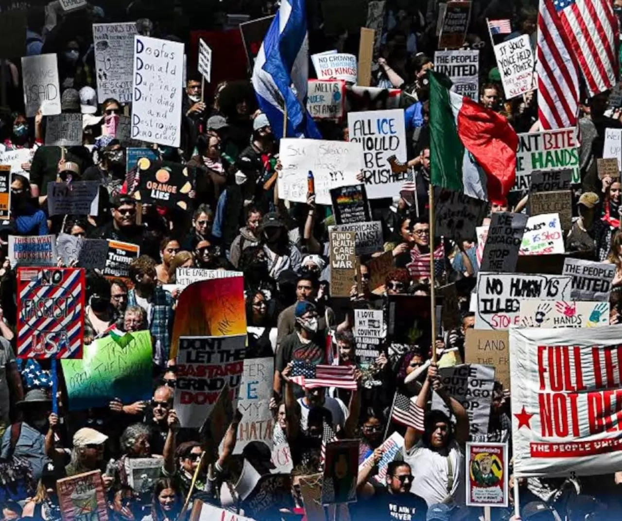 Gösterilere sahne olan kentlerden New York'ta, yüzlerce kişi Trump Tower önünde toplanarak "New York işçi kentidir" sloganı attı.