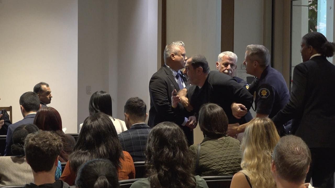 Konferansın sona ermesinin ardından YEE Başkanı Ateş, Türkiye'nin Los Angeles Din Hizmetleri Ataşesi İsmail Demirezen ve O3 Medya Yöneticisi Saner Ayar, dışarıda göstericilerin fiziki ve sözlü saldırısına uğradı.