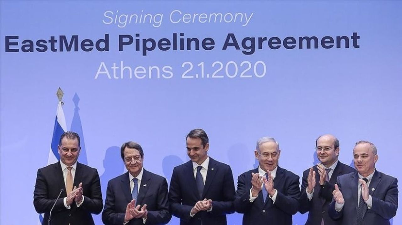 Doğu Akdeniz'den çıkarılacak gazın Kıbrıs üzerinden Yunanistan'a, oradan da İtalya'ya ulaştırılmasını hedefleyen "EastMed" projesine ilişkin anlaşma, Atina'da Ocak 2020'de düzenlenen bir törenle Yunanistan, İsrail ve GKRY arasında imzalanmıştı.