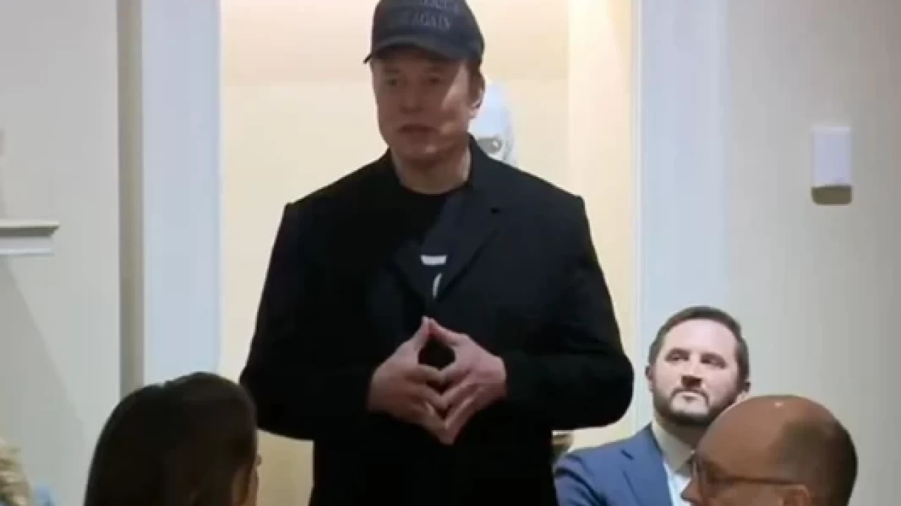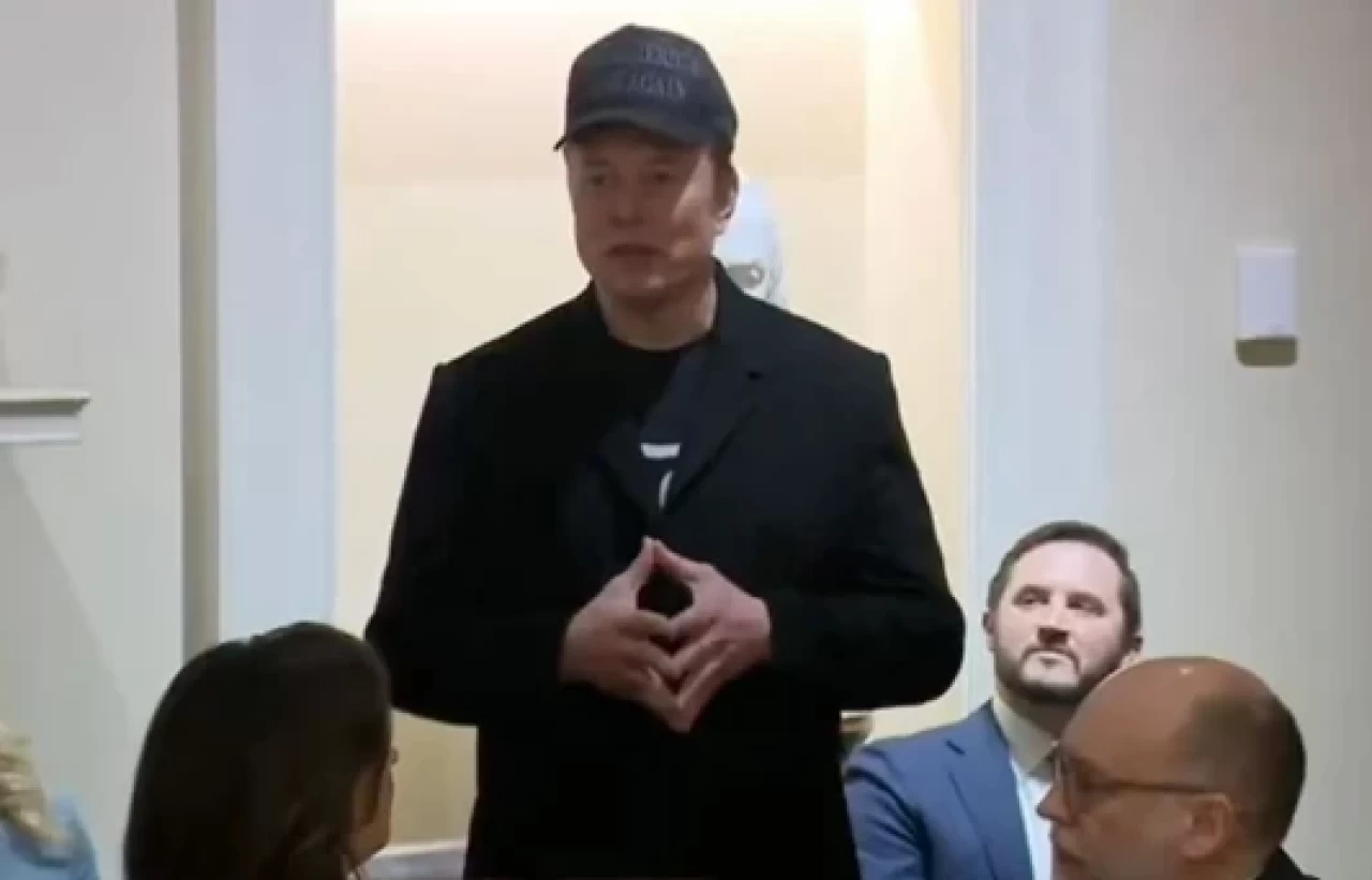 Üzerinde "Amerika'yı yeniden büyük yapalım (Make America Great Again)" sloganının kısaltması olan MAGA yazılı bir şapka takan ve "Teknik Destek" yazılı bir tişört giyen Musk'ın Trump ile kabine üyelerinin oturduğu masanın dışında yer aldığı görüldü.
