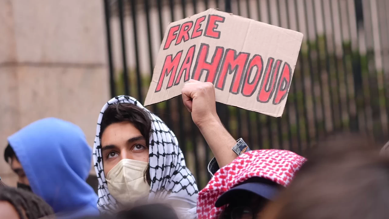 Çoğu Yahudi kökenli bir grup öğrenci, Halil'in gözaltında tutulmasını protesto etmek için gösteri düzenledi.