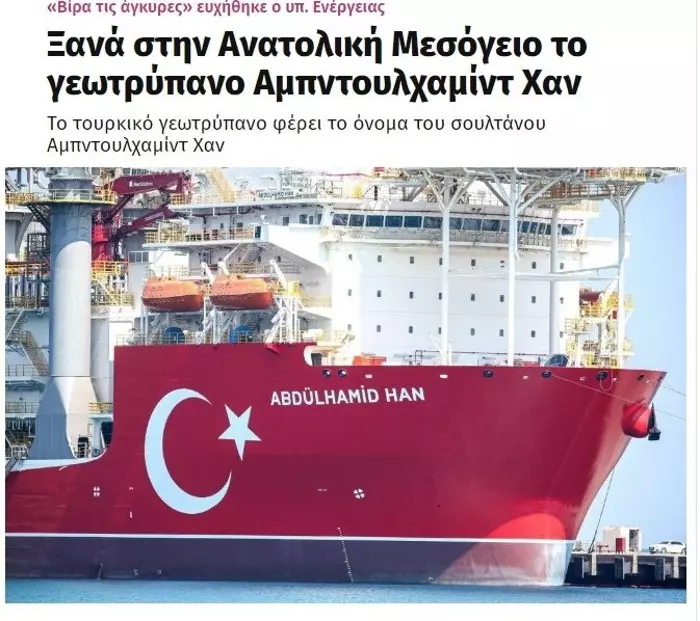Türkiye'nin dördüncü, dünyanın ise beşinci büyük sondaj gemisi olan Abdülhamid Han da haliyle Yunan basının oldukça ilgisini çekiyor.
