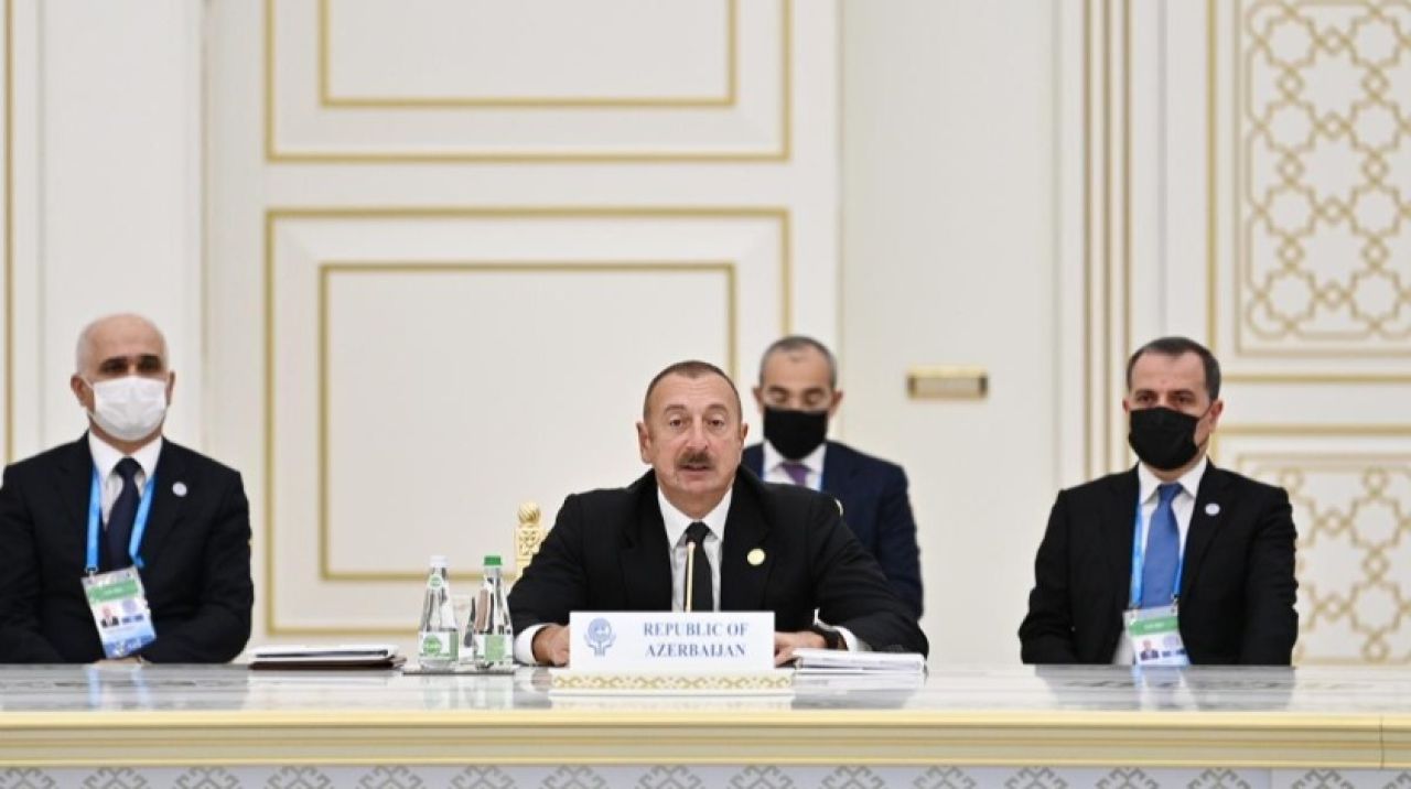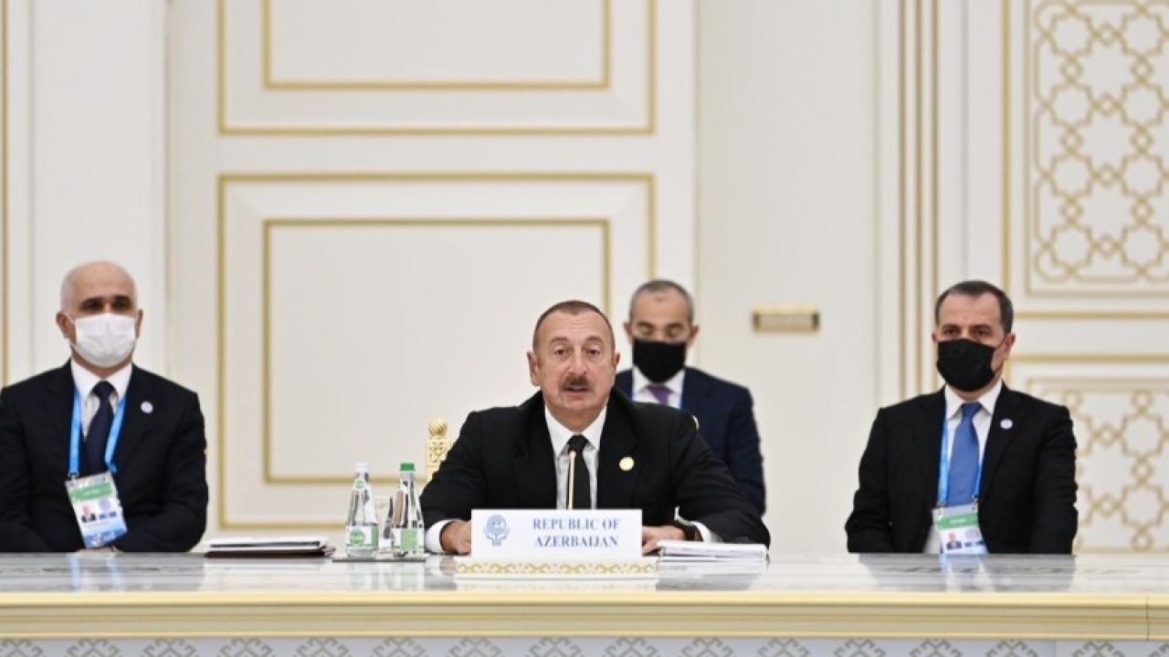 Cumhurbaşkanı Aliyev, Türkmenistan'ın başkenti Aşkabat'ta düzenlenen Ekonomik İşbirliği Teşkilatı (EİT) 15. Zirvesi'nde konuştu.