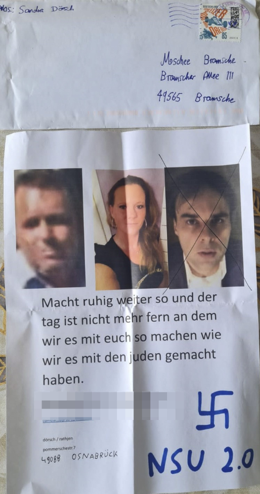 Bramsche DİTİB Eyüp Sultan Camisi Dernek Başkanı Ahmet Irmak, yaptığı yazılı açıklamada, Nasyonal Sosyalist Yeraltı (NSU) imzasıyla hafta içinde bölgedeki başka bir camiye daha tehdit içerikli mektup gönderildiğini belirtti.