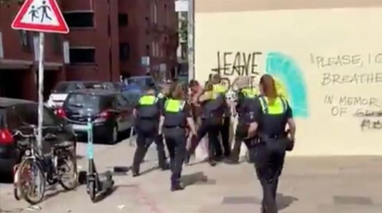 Sosyal medyaya yansıyan görüntülerde polislerin genci sıkıştırdığı duvarda, Amerika’da polis şiddeti sonucu hayatını kaybeden George Floyd’un ölmeden önceki sözleri olan "nefes alamıyorum" yazısının bulunması dikkati çekti.