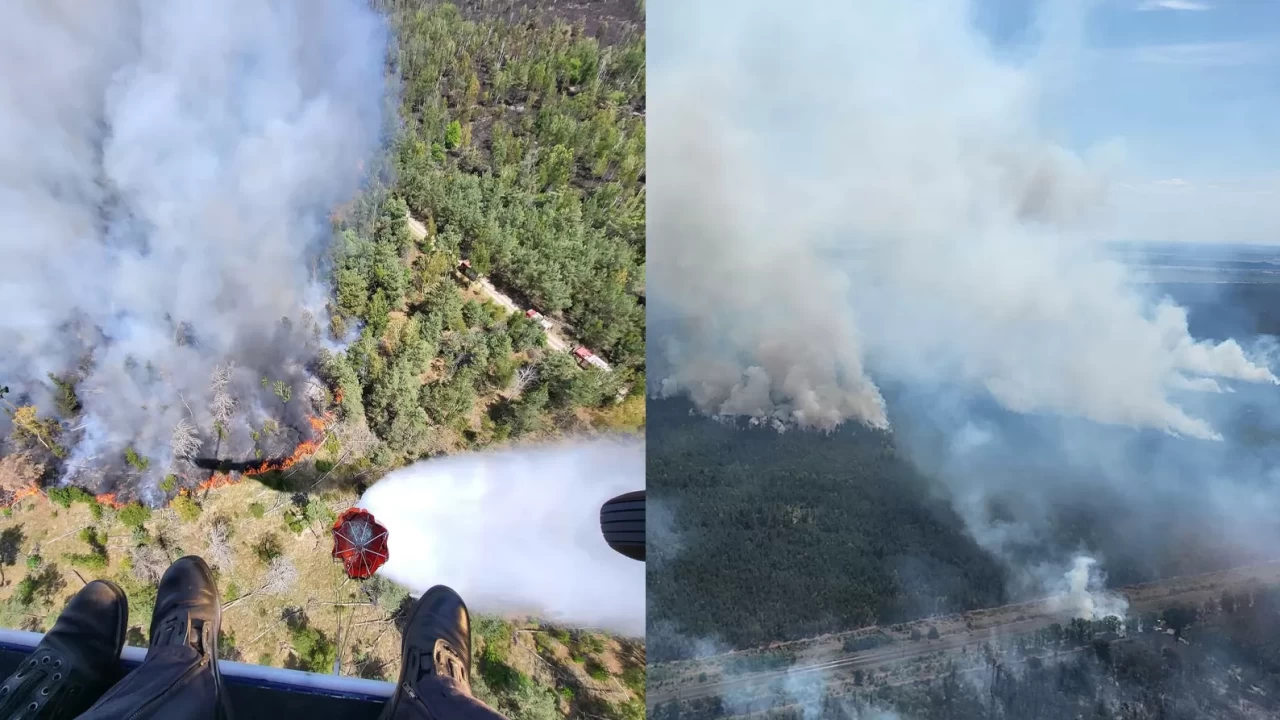 Almanya’nın Thüringen, Saksonya ve Brandenburg eyaletlerinde beş gündür etkili olan orman yangınları, zorlu hava koşulları ve su sıkıntısı nedeniyle kontrol altına alınamıyor. İtfaiye ekipleri ile askeri helikopterlerin müdahalesi devam ederken, özellikle Gohrischheide bölgesi yerleşim yerleri için risk oluşturmaya devam ediyor.