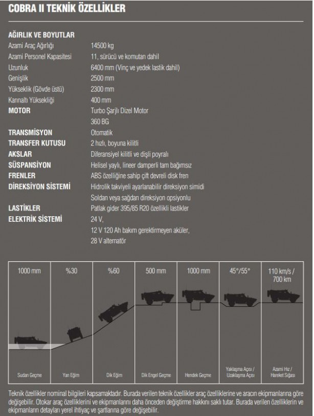 Otokar COBRA II COBRA II 4×4 Taktik Tekerlekli Zırhlı Araç müttefik ülke ve Türk Silahlı Kuvvetlerinin ileriye dönük gereksinimleri doğrultusunda geliştirilen üstün teknik ve taktik özelliklere sahip modüler bir platformdur.