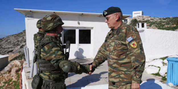 Konstantinos Floros, Keçi Adası'ndaki askeri birliği denetledi, görevlilerden bölgedeki durum hakkında bilgi aldı.