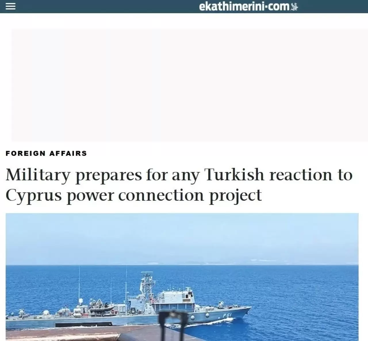 Kathimerini, Atina'nın küstah provokasyonunu "Yunanistan'ın askeri liderliği, geçen yıl çalışmaların geçici olarak durmasına neden olan gerginliklerin ardından, bu sonbaharda yeniden başlayacak olan Yunanistan-GKRY elektrik hattı projesini korumak için kapsamlı operasyonel planlar hazırlıyor." ifadeleriyle aktardı.