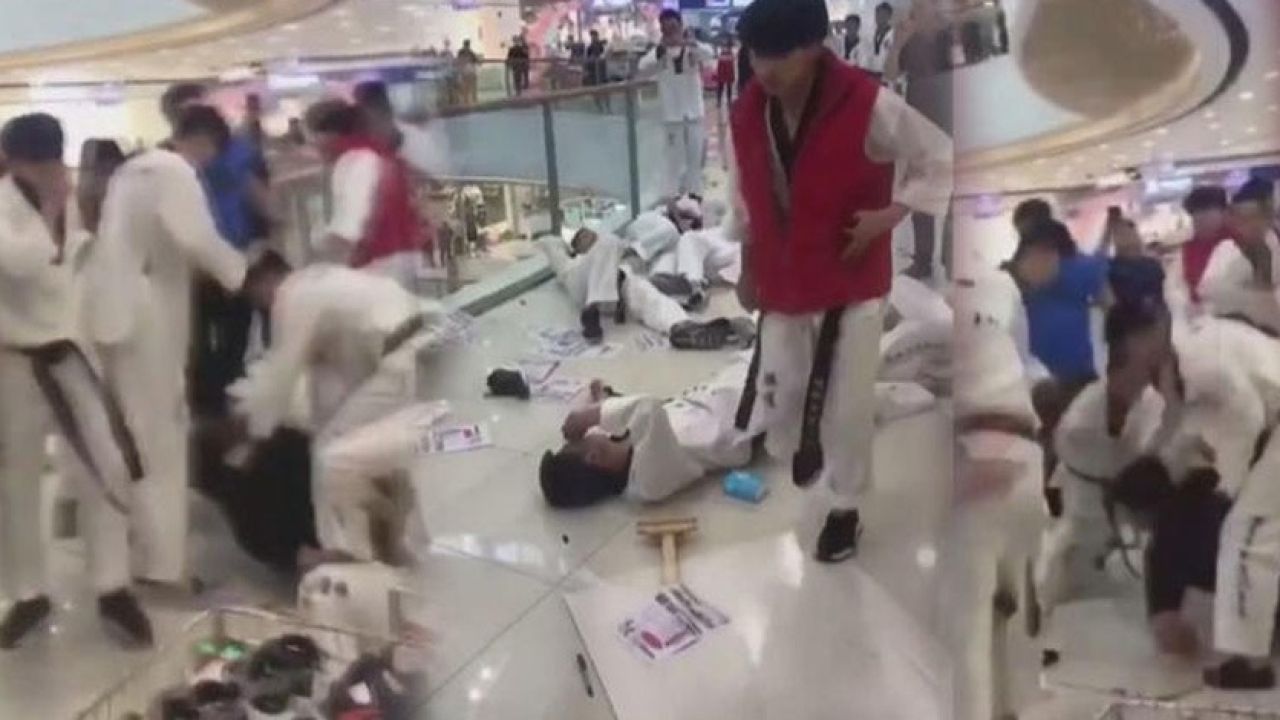 Alışveriş merkezinin orta katında meydana gelen ve tekvandocu bir grup ile bir spor merkezinin çalışanları arasındaki kavgayı AVM'yi gezmekte olan müşteriler kaydetti.
