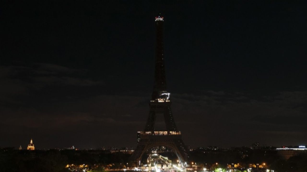 Bu kapsamda başkentin sembolü haline gelen Eyfel Kulesi, 1 saat 15 dakika önce karartıldı.