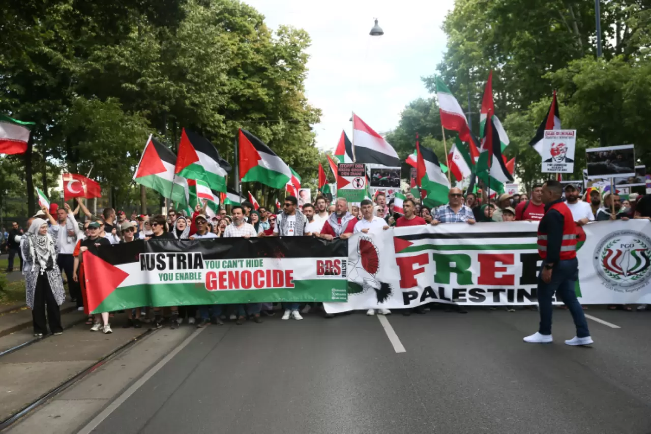 Gösterinin düzenleyicilerinden Avusturyalı aktivist Wilhelm Langthaler ise Avusturya hükümetinin İsrail'e koşulsuz destek verdiğini söyledi.