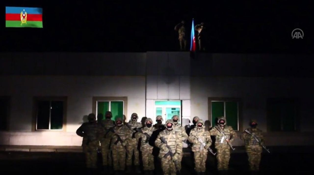 Azerbaycan Savunma Bakanlığının paylaştığı görüntülerde, şehre giren askerlerin komutanı, bayrak asılan binanın önünde Cumhurbaşkanı İlham Aliyev'e hitaben, "Sayın Başkomutanım, Azerbaycan bayrağı Laçın kentinde dalgalanmaktadır. Yaşasın Azerbaycan. Yaşasın Başkomutan. Karabağ, Azerbaycan'dır." şeklinde konuşma yaptı.