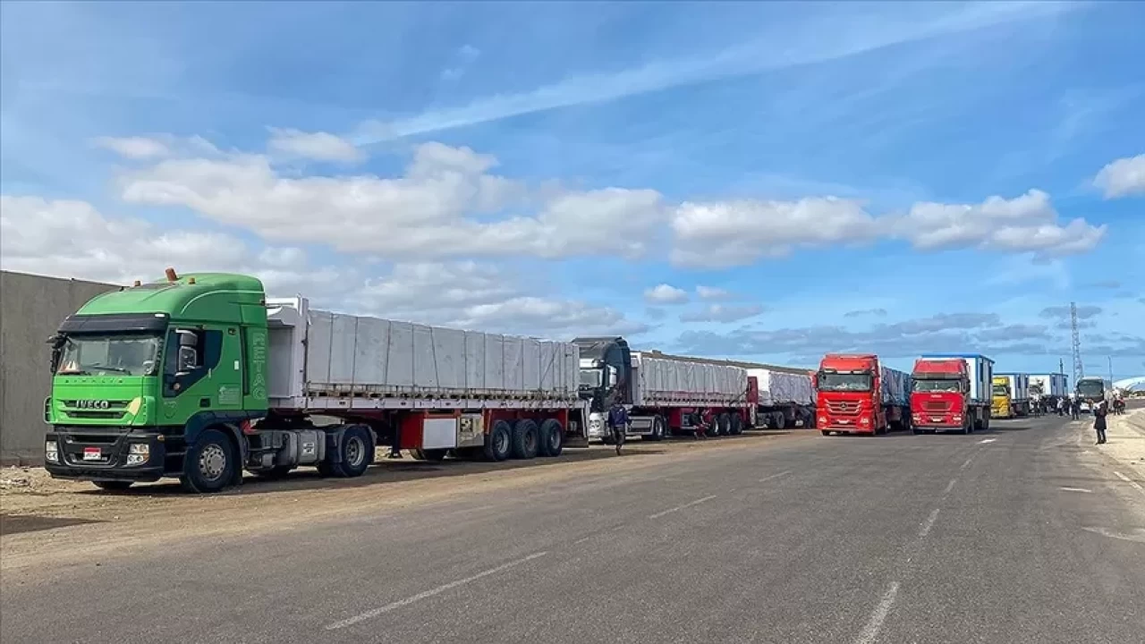 Hükümetin Medya Ofisi'nden daha önce yapılan açıklamada, Gazze'nin günlük olarak en az 500 yardım ve 50 yakıt tırına ihtiyaç duyduğu belirtilmişti.