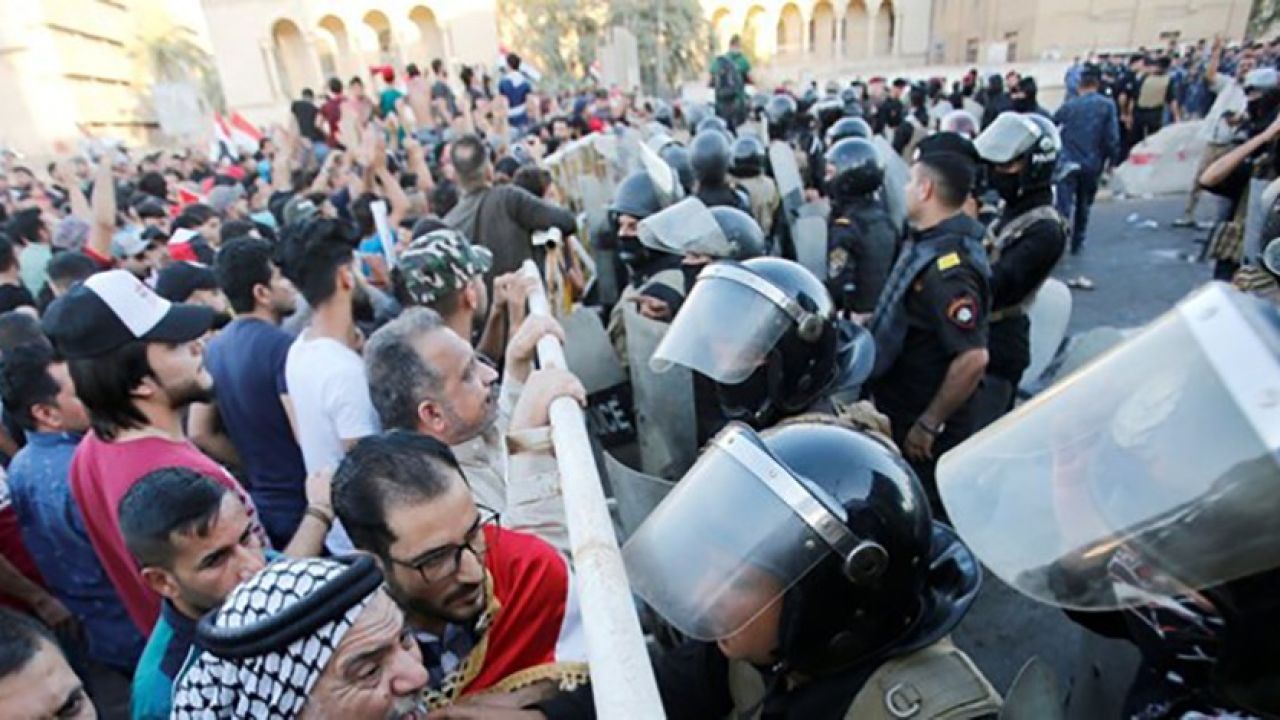 Başkent Bağdat’taki Tahrir Meydanı’nda sözleşmeleri feshedilen memurlar toplanarak protesto gösteri düzenledi.