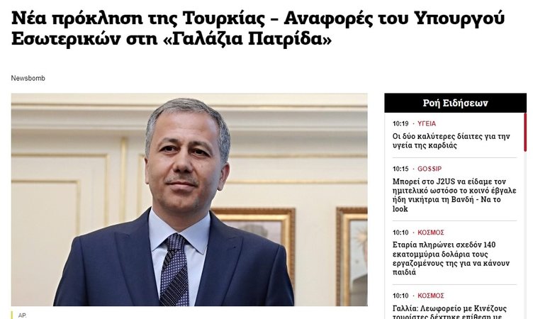 Yerlikaya'nın 'Mavi Vatan' paylaşımı Yunan basınında yankı uyandırdı. News 247, Yerlikaya'nın paylaşımını 'provokatif' olarak nitelendirdi.