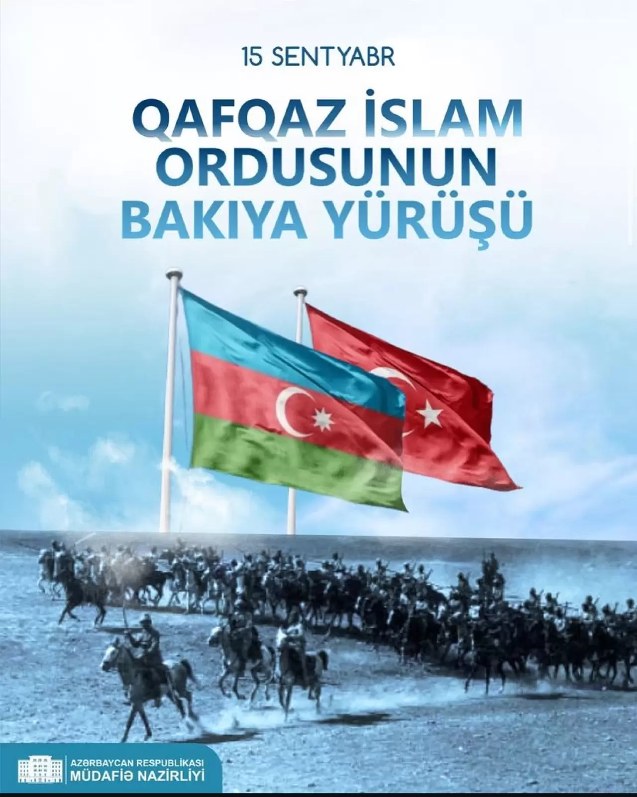 1918’de Nuri Paşa komutasındaki Kafkas İslam Ordusu’nun yürüyüşüyle Bakü, işgalden kurtarılarak özgürlüğüne kavuşmuştu. Azerbaycan her yıl 15 Eylül’de bu tarihi günü anıyor.