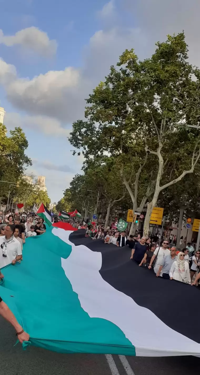 Gösteri, şehir merkezindeki turdan sonra Üniversite Meydanı'nda sona erdi. Burada, Katalonya Filistin Topluluğu'nun çağrısıyla toplanan kalabalıkla bir araya gelen taksiciler, Gazze'deki soykırımı ve İsrail'in sömürgeci rejimiyle olan tüm suç ortaklığının sona ermesi talebini içeren bir manifesto okudu.