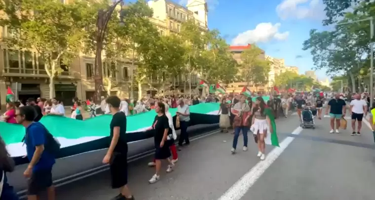 İspanya Barselona'da yaklaşık 200 taksici, "İsrail'in, Gazze'deki soykırımını kınamak ve Filistin'e destek vermek" temasıyla kent merkezinde araçlarını yavaş yavaş kullanarak dolaştı. Anget Taksi Derneği'nin çağrısıyla düzenlenen eylemde taksiciler, araçlarına Filistin bayrağı asarak protestolarını güçlendirdi.