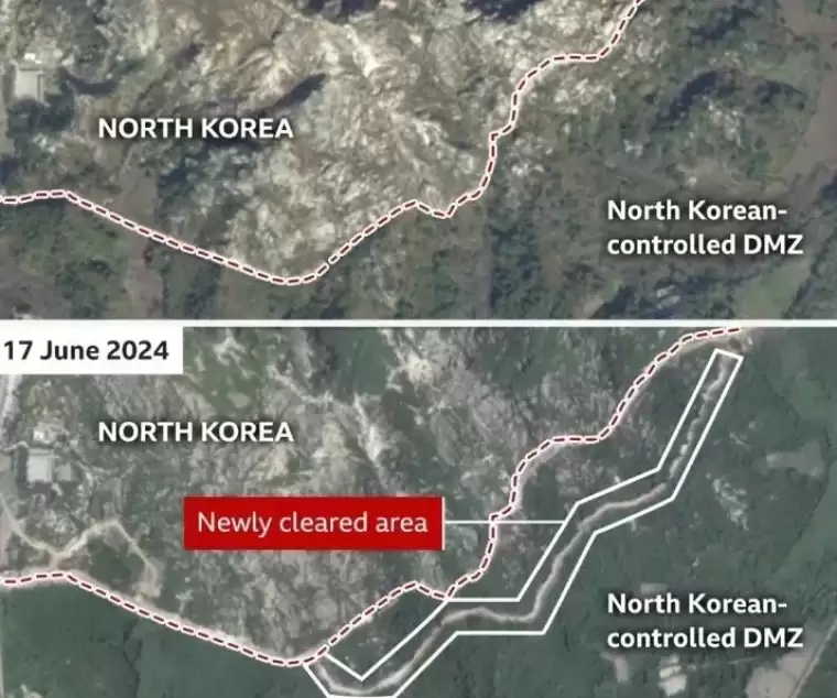 Haberde belirtilene göre, "BBC Doğrulama" ekibi, Kuzey Kore'nin Güney sınırına yakın bölgede askeri faaliyetlerde bir artış olduğunu tespit etti. Uydu görüntüleri incelendiğinde, Kuzey Kore'nin kontrolündeki bir askerden arındırılmış bölgede arazinin temizlendiği görüldü.