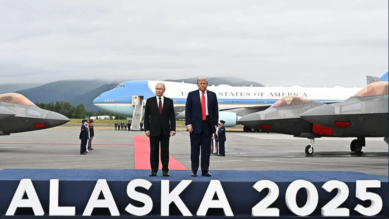 Bu fotoğrafın açıklamasında, "Başkan Donald J. Trump ve Başkan Vladimir Putin ile Alaska'da tarihi zirve." ifadesine yer verildi.