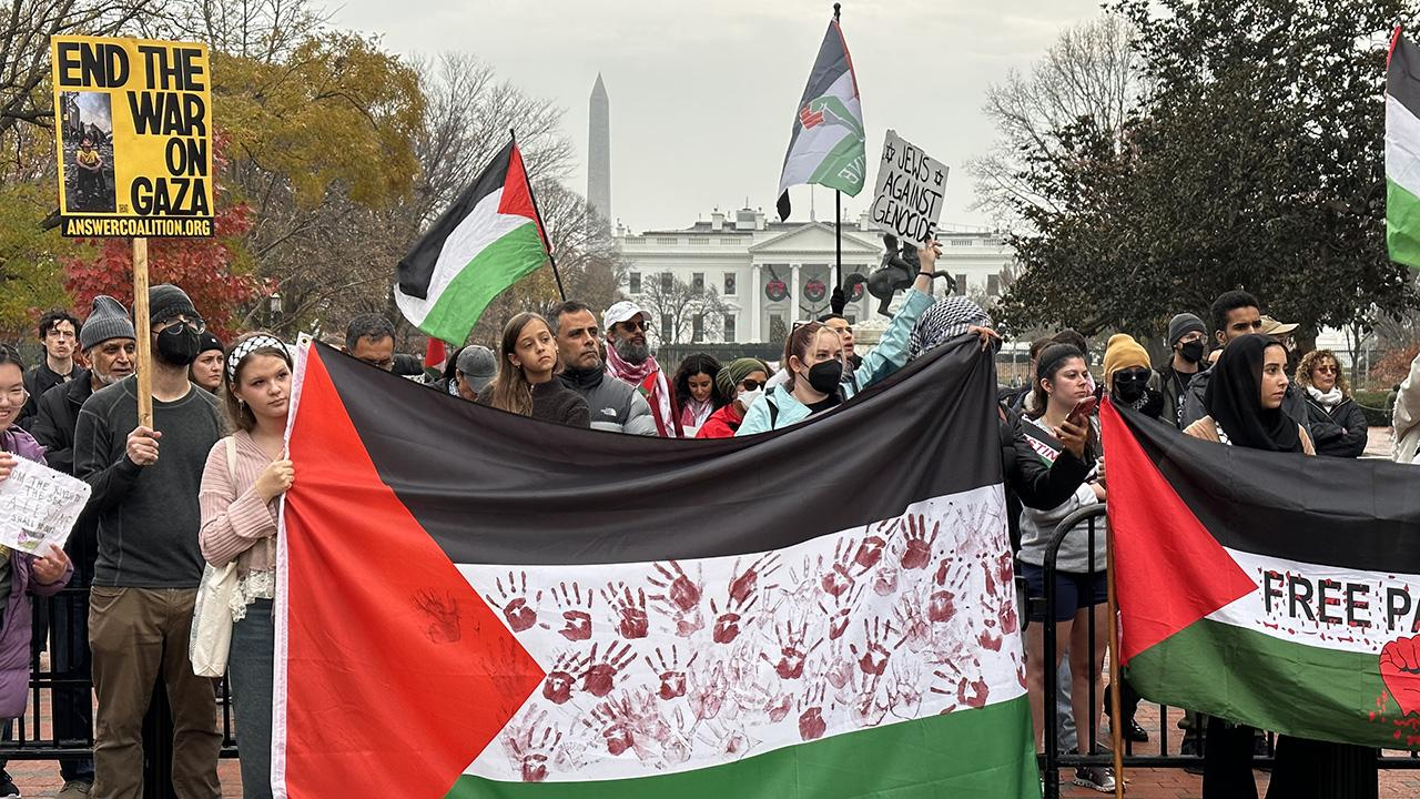 Beyaz Saray'ın önünde bir araya gelen protestocular, Filistin lehine slogan attı.
