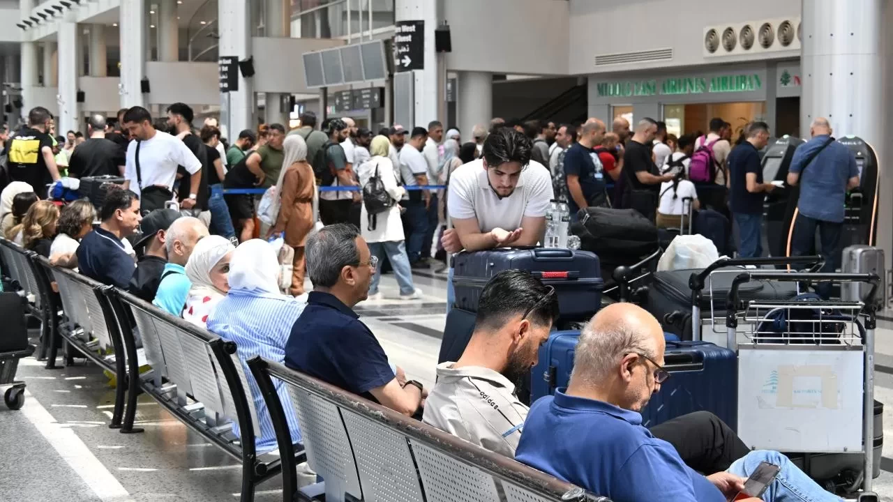 Havalimanında uzun kuyrukların oluştuğu gözlenirken, yolcuların endişeli bekleyişi devam ediyor.