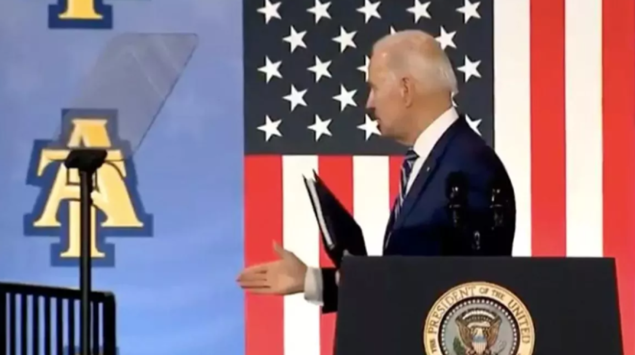 Biden'ın dün Kuzey Carolina'da yaptığı konuşma sonrası elini boşluğa uzatarak birileriyle tokalaşıyor gibi yapması sosyal medyanın gündeminde yer aldı.