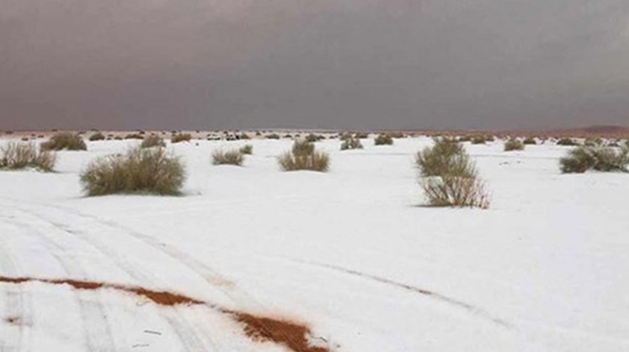 Suudi Arabistan'ın El Cevf bölgesinde hava sıcaklıklarının sıfırın altına düşmesi ile kar yağdı. Hava sıcaklığının eksi 3'e kadar düştüğü bölge beyaz örtüyle kaplandı.