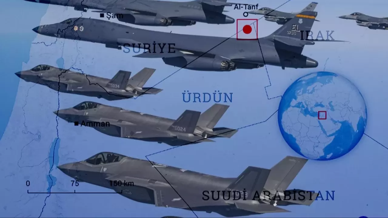 Uçaklar, Ürdün topraklarında 3 ABD askerinin öldüğü ve onlarcasının yaralandığı Kule 22 Üssü ile Suriye topraklarına çok yakın Tenef Üssü semalarında uçuş gerçekleştiriyor.