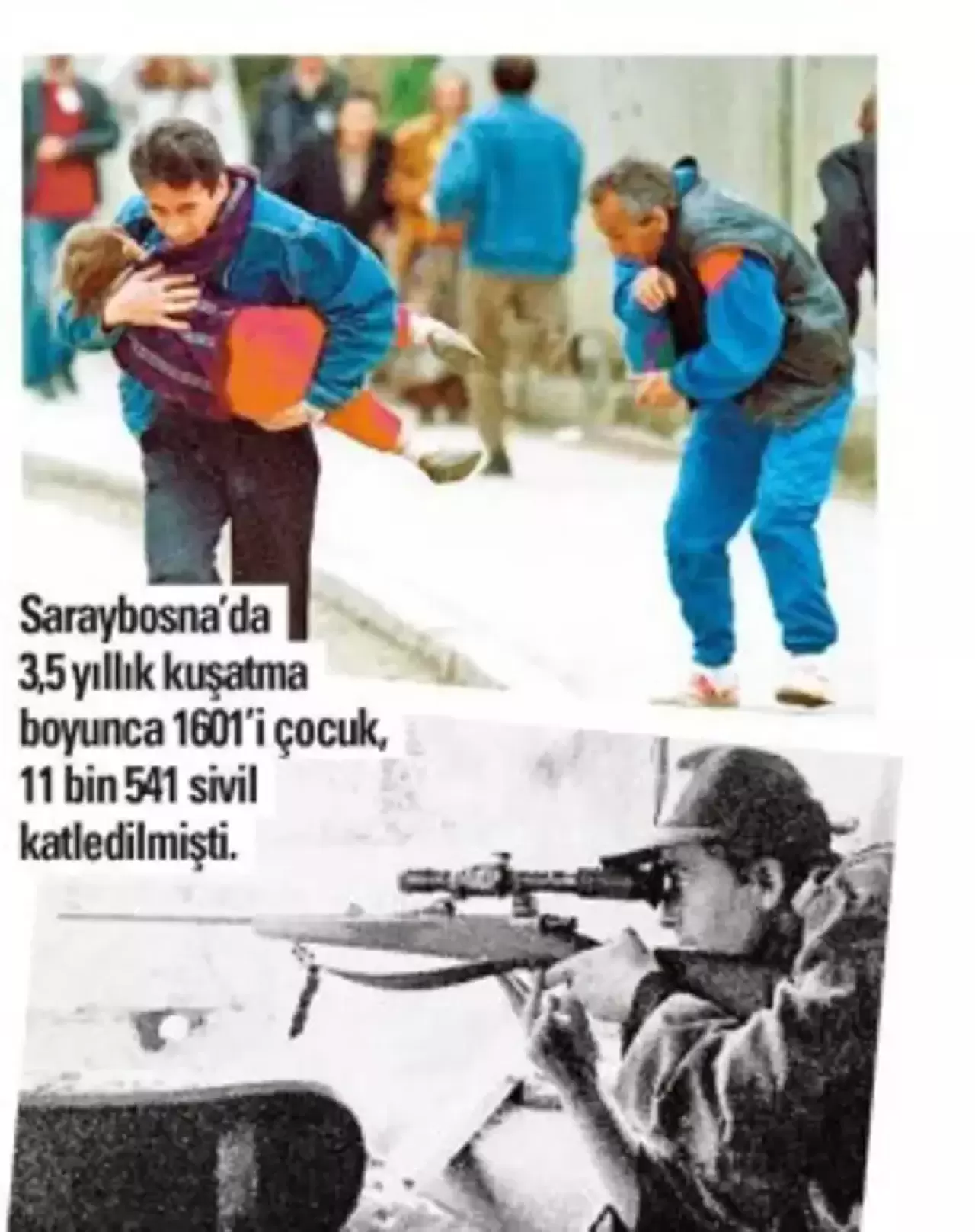 Bosna Hersek’te 1992-1995 yılları arasında yaşanan savaşta, Saraybosna Sırp birlikleri tarafından kuşatma altına alınmış ve kent her gün bombardımana maruz kalmıştı. 3,5 yıl süren kuşatma boyunca 1601’i çocuk olmak üzere 11 bin 541 sivil hayatını kaybetmiş, tarihi ve kültürel yapılarla altyapı büyük zarar görmüştü.