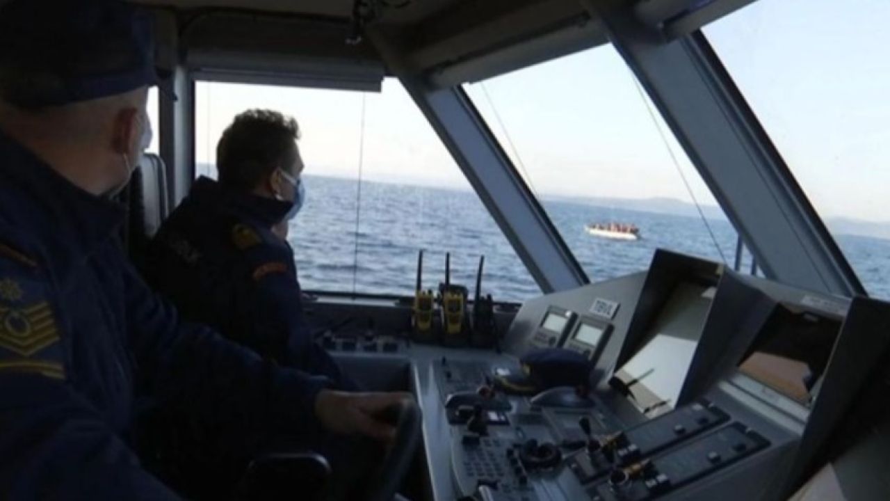 Midilli açıklarındaki Yunan kara suları sınırında AB Sınır Güvenlik Ajansına (Frontex) bağlı bir botun yanına gelen iki Yunan sahil güvenlik botunun sığınmacıların lastik botunu hareketsiz hale getirdiği görülüyor.