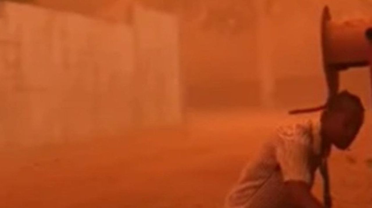 Sosyal medyada viral olan fotoğraflarda Niamer şehrinin silüetinin arkasında dev bir kum tsunamasi ve gökyüzüne yükselen kırmızı bulutlar görülüyor.