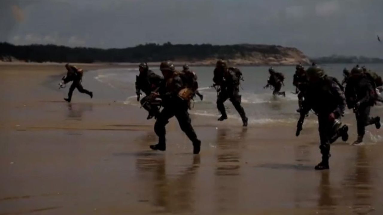 Çin Halk Kurtuluş Ordusu (PLA), Pazartesi günü Weibo hesabından, askerlerin dalgalar halinde çıkarma yaparak sahili ele geçirme tatbikatını gösteren bir video yayınladı.