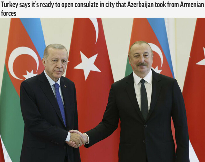 Associated Press, Türkiye'nin, Azerbaycan'ın Ermeni güçlerinden geri aldığı şehirde konsolosluk açmaya hazır olduğunu açıkladığını yazdı.