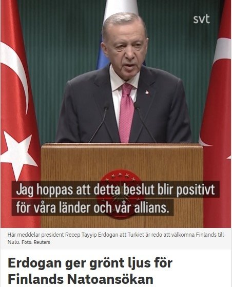 Finlandiya kararı, İsveç basınında da büyük yankı uyandırdı. SVT Nyheter gazetesi, Finlandiya'nın üyelik sürecinin başlatılmasını "Erdoğan'dan yeşil ışık" sözleriyle duyurdu. Gazetede, Cumhurbaşkanı Erdoğan'ın İsveç'e yönelik sarfettiği "Teröristlere kucak açtınız" sözlerine de vurgu yapıldı.