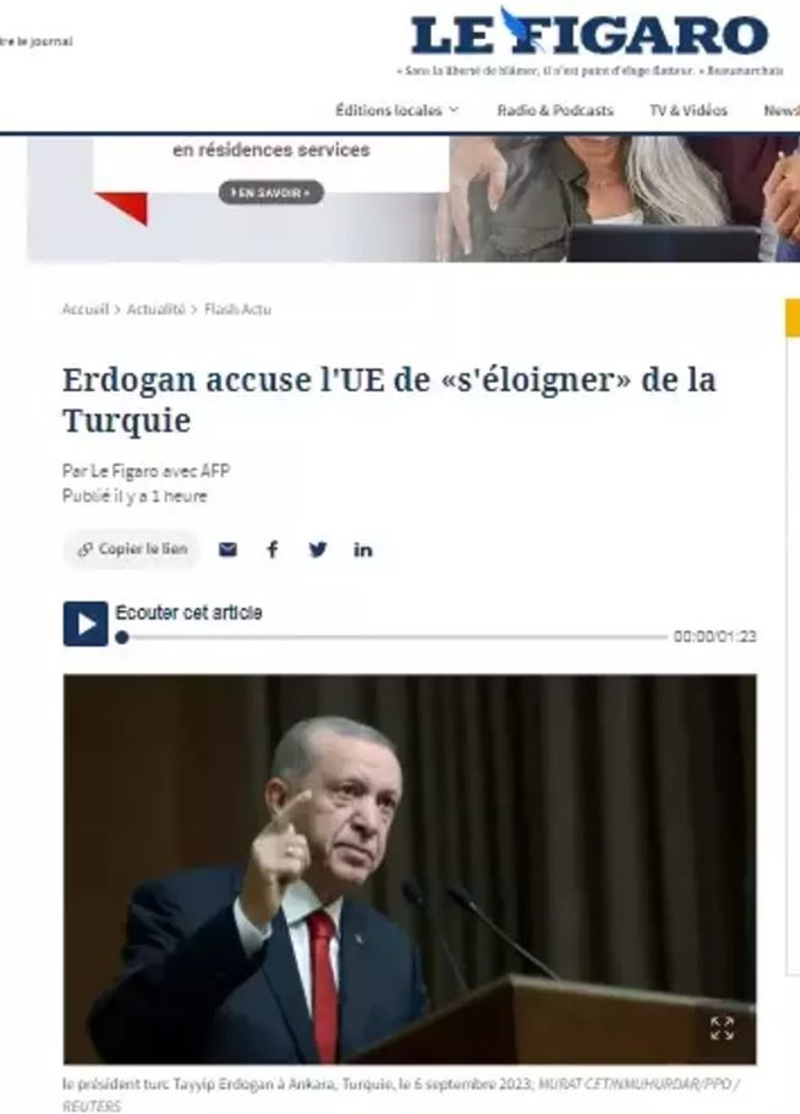 Gazete Erdoğan'ın Avrupa Birliği'yle ilgili sözlerine de yer verdi ve "Türkiye AB'den kopabilir" yorumunda bulundu.
