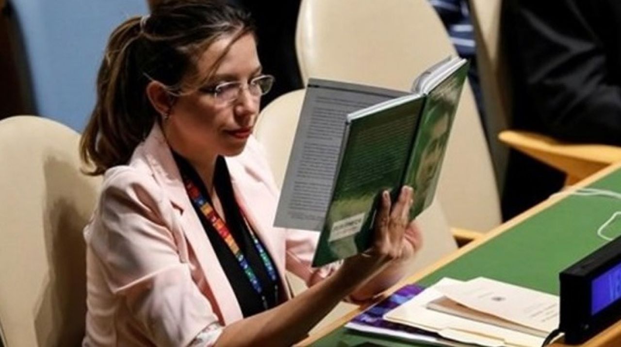 Delegenin okuduğu kitap, Güney Amerika tarihi için tarihi öneme sahip bir figür olan Simon Bolivar'ı mercek altına alıyor. Kitabın kapağında da 1819'dan 1930'a kadar Venezuela, Bolivya ve Peru'yu yöneten Bolivar'ın bir resmi yer alıyordu.