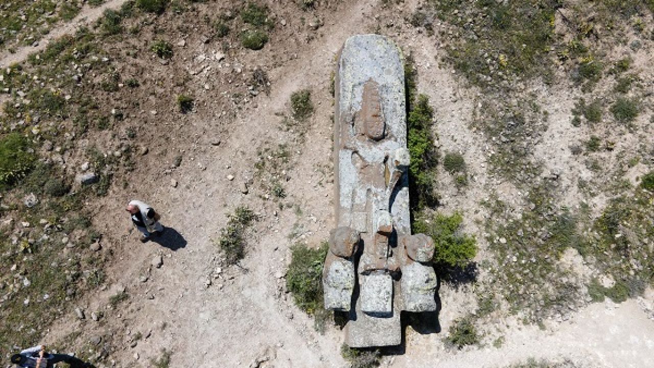 Günümüzde yerde yatar vaziyette bulunan anıtın bütünüyle tamamlanmış halde olmadığının düşünüldüğünü aktaran Prof. Dr. Muşmal, özellikle alanın uzmanları Eskiçağ ve Hitit tarihçilerinin dönemle ilgili çalışmalarından bunu anlayabildiklerini belirterek, “Dönemle ilgili çalışmalardan ve bugünkü vaziyetinden anıtın ayağa dikilmek amacıyla yapıldığı anlaşılıyor. Anıtın hemen yanında bir taş ocağı var. Yani anıt döneme ait diğer anıtlardan farklı olarak yekpare bir bazalt taşından, kayadan oyulmak suretiyle meydana getirilmiş. Ortalama 2,5 metre genişlik ve yaklaşık 8,30 metre yüksekliğe sahip olduğu ölçümlerde ortaya çıkıyor. Kaidesiyle birlikte düşünüldüğünde oldukça büyük bir anıt olduğu görülüyor. Bu yönüyle de hesaba göre 72 ton ağırlığında olduğu tahmin ediliyor. Anıtın üzerinde 20 metrekarelik bir alan üzerinde bir kompozisyon oluşturulmuş. Yani 8,5 metre yüksekliğinde 72 ton ağırlığındaki devasa anıt bugün yerde uzanmış vaziyette yatıyor. 3 bin 500 yıldır orada öylece yatıyor” ifadelerine yer verdi.