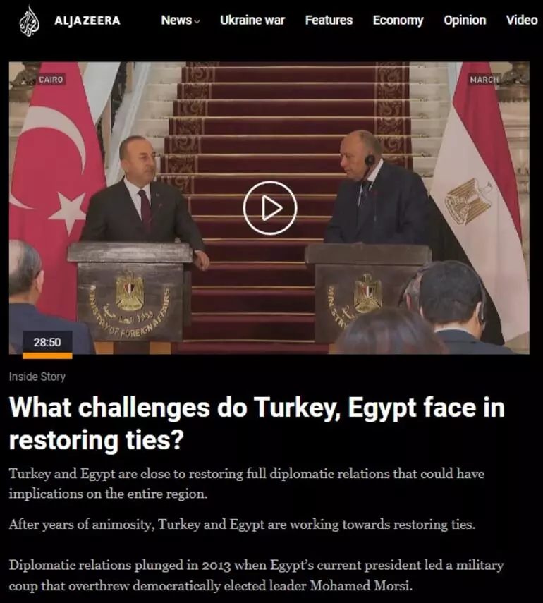 Aljazeera başka bir haberde ise Türkiye ve Mısır arasında yeniden kurulan diplomatik ilişkilerin bölgede geniş çaplı etkileri olabileceğini yazdı.