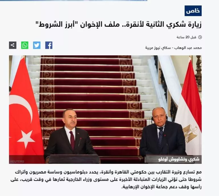 İeidiseis haber sitesi Çavuşoğlu ve Şükri'nin 40 gün gibi kısa bir sürede 3 kez bir araya geldiğine dikkat çekerek 'Türkiye ve Mısır hızlı bir şekilde yakınlaşıyor' ifadelerine yer verdi.