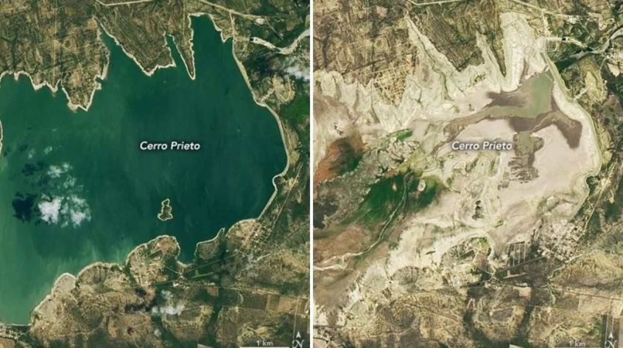 ABD Ulusal Havacılık ve Uzay Dairesi (NASA), uzaydan çektiği fotoğraflar ile Meksika’daki kuraklık ve su sorununu gözler önüne serdi. Meksika’nın kuzeyinde bulunan Nuevo Leon eyaletindeki Cerro Prieto Barajı’na ait 20 Temmuz 2015 ve 7 Temmuz 2022 tarihlerinde çekilen uydu fotoğrafları barajdaki su seviyesinin şimdiye kadar ki en düşük seviyeye indiğini gösterdi. NASA, son yıllarda Meksika’da yaşanan kuraklığın şu anda 21 milyondan fazla insanı olumsuz etkilediğini bildirdi.