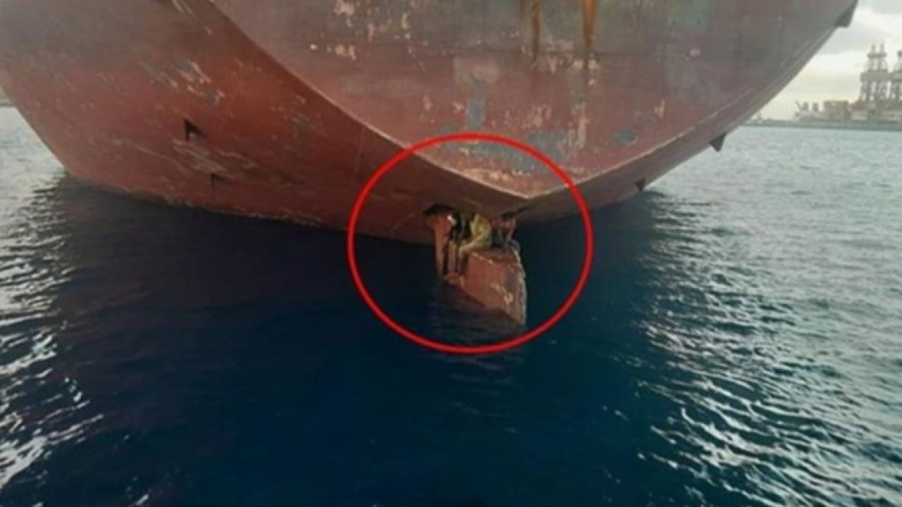 İspanya sahil güvenlik güçleri Nijerya'dan yola çıkan bir geminin gövdesinin aşağısında, su hizasında bulunan dümen bölümünde 11 gün boyunca seyahat eden 3 mülteciyi kurtardı. Mültecilerin, susuzluk çektiği belirtilerek tedavi altına alındığı ifade edildi.