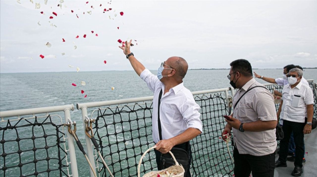 Yetkililer ve yolcu yakınları, uçağın düştüğü bölge olan başkent Cakarta’nın kuzey açıklarında Laki ve Lancang Adası arasındaki noktada dua ederek denize çiçekler bıraktı.