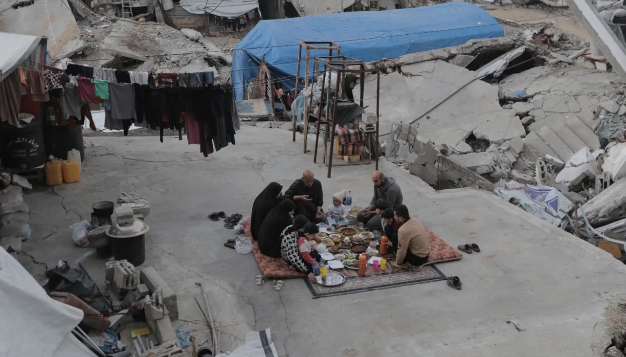 Gazze kentinin kuzeyindeki Şeyh Ridvan semti, yoğun saldırıların ardından adeta bir harabeye dönüşmüş durumda. Bu yıkımın mağdurlarından biri olan Abu Naji ailesi, barınacak bir evleri kalmamasına rağmen topraklarını terk etmedi. Aile üyeleri, anılarının gömülü olduğu beton yığınlarının arasında mütevazı bir sofra hazırlayarak oruçlarını açtı.