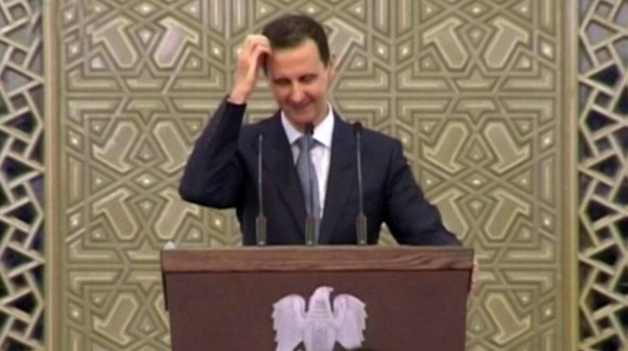 Durumu düzelen Esed, konuşmasına kaldığı yerden devam etti.
